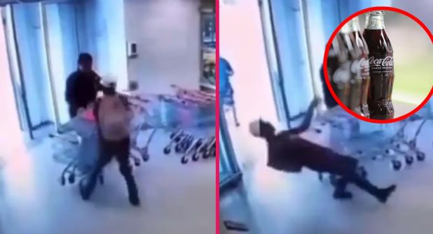 En un valiente acto de justicia y buena suerte, un empleado de supermercado se convirtió en héroe al noquear a un ladrón con un botellazo de Coca-Cola, neutralizando al instante al implicado.