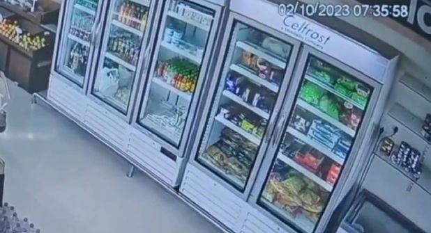 En las imágenes se ve cómo todo ocurrió en cuestión de segundos. La niña caminaba descalza por uno de los pasillos de la tienda y cuando intentó abrir la puerta del refrigerador, quedó pegada al electrodoméstico.