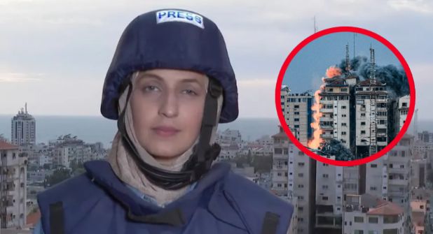 En las imágenes se observa a la mujer con un casco y micrófono, reportando los sucesos en el lugar, cuando es sorprendida por el impacto de un misil en el edificio detrás suyo. La reportera busca rápidamente protegerse del estallido al igual que el camarógrafo, quien intenta no dejar de grabar el terrible suceso.