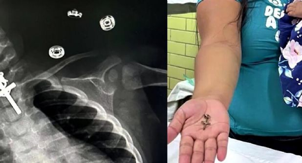 Claramente, la placa mostraba el crucifijo atorado en el esófago, lo que causó que tuviera problemas para respirar.