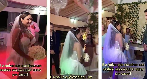 En un curioso video que circula en la red social "X", una novia brasileña se ha vuelto el centro de atención al llegar a su propia boda vistiendo un provocador vestido de novia.