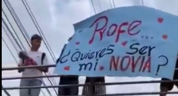 Un valiente estudiante se le declaró a su maestra en un puente cercano a su escuela y frente a decenas de personas.