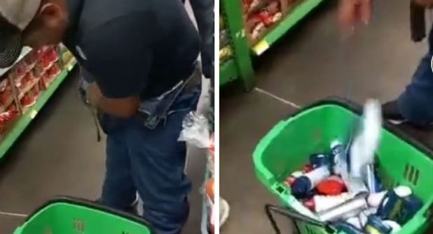 La indignación llegó cuando el hombre termina de vaciar todos los productos en la canasta y, después de ser revisado por un empleado, sale de la tienda sin ser detenido.