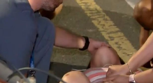 Se observa a la víctima tirada en el piso con una respiración entrecortada, seguramente con mucha dificultad para respirar por las fracturas sufridas a causa de los conocidos en aquellas tierras como "motochorros" que son asaltantes a bordo de motocicletas.