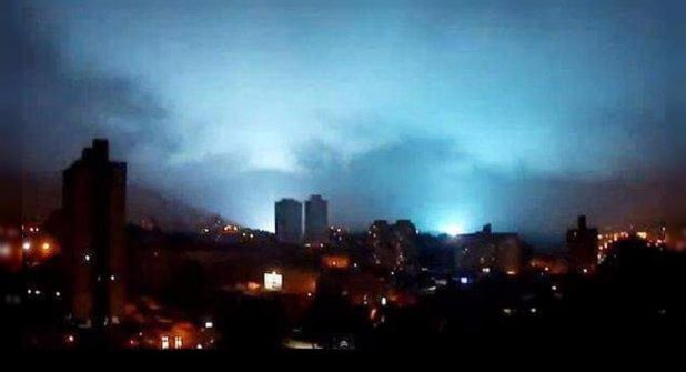 En este video publicado por el usuario Nafú Togó en la popular red social de dichos y citas celebres, Twitter, se aprecian varias veces unas luces que relampaguean en el cielo a lo lejos.