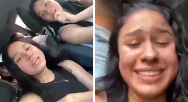 En el video aparecen las dos jóvenes al frente y dos mujeres y un hombre más, quienes van alegremente cantando; de repente, la conductora comienza a voltear al celular que llevaba su compañera.