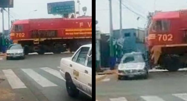 Fue en Perú donde la imprudencia de un conductor casi se transforma en tragedia al ser captado en video cómo atraviesa las vías del tren a gran velocidad. En dicho clip se observa a un taxi transitar sin problemas por una avenida, en un momento dado otro auto detrás de él acelera para alcanzarlo, sin contar que el tren se encuentra a unos pocos metros de llegar.