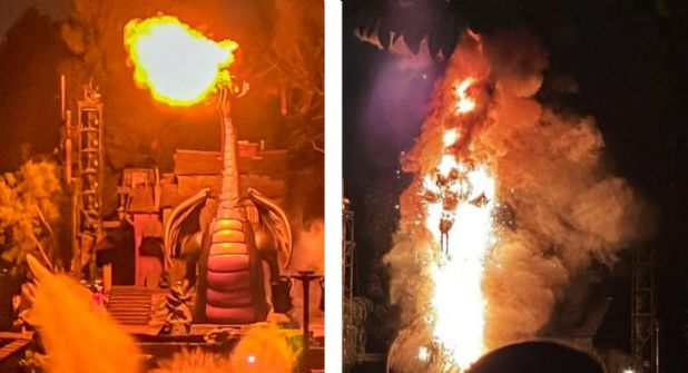 El dragón de Maléfica se incendió durante la segunda presentación de Fantasmic en Disneyland. El fuego estalló cuando Mickey Mouse disparó chispas a la cabeza del dragón gigante para derrotarlo en la trama del espectáculo.