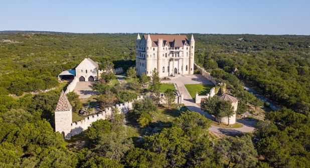 Esta bella e imponente estructura medieval está construida en piedra y cuenta con torreones y ventanales estilo gótico, además de un enorme portón de entrada de 22 pies de alto, con un camino rodeado de vegetación. Este lugar está disponible para efectuar eventos privados, como bodas, fiestas y más. Está a solo 10 minutos en automóvil de New Braunfels, Texas, en la autopista 46 oeste