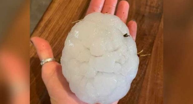 Autoridades en Erath, Texas señalan que el tamaño del granizo rompió algunas ventanas, además de cubrir el piso completamente con hielo. Usuarios en redes sociales muestran el impresionante tamaño de las bolas de hielo.