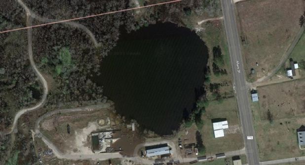 Este gran socavón en Daisetta, Texas se formó por primera vez en 2008, comenzando como un hundimiento de 20 pies de diámetro que creció hasta convertirse en un cráter de 900 pies de ancho y 260 pies de profundidad, según informó un medio local.