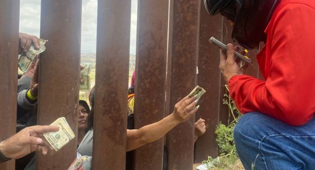 Mediante aplicaciones como Rappi o Didi, desde territorio estadounidense los indocumentados hacen pedidos a locales mexicanos y los repartidores acuden al punto de entrega en la línea que divide ambos países, donde se erigen grandes barrotes de metal.