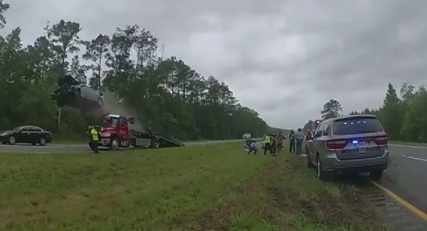 El hecho se registró el pasado miércoles 24 de mayo sobre la carretera 84, en el condado de Lowndes, al sur de Georgia, y quedó capturado por la cámara corporal de uno de los agentes que acudieron al sitio del primer percance.