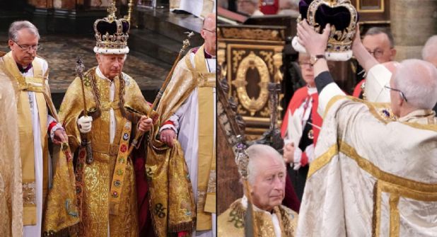Fueron minutos después del mediodía de este sábado (tiempo de Inglaterra) cuando el rey Carlos III recibió la corona por parte del arzobispo de Canterbury.