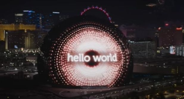 Además, proyectó la palabra “hello world”, animación que pretende mostrar una nueva era en el mundo del espectáculo.