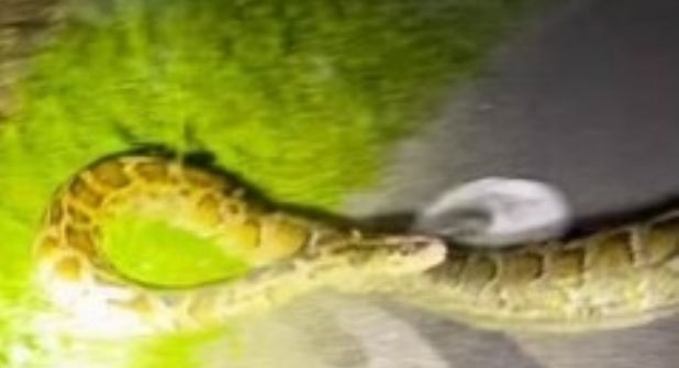 Narraron que caminaban por la acera del pantano cuando vieron que algo se movía frente a ellos y al iluminarla con la lámpara de sus celulares, vieron que se trataba de una pitón.