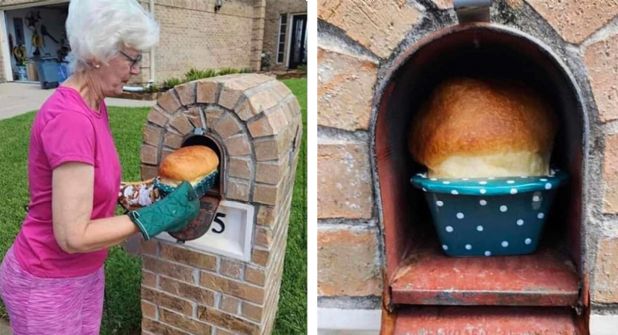 Una abuelita del condado de Montgomery, Texas fue contactada por todo el mundo después de compartir imágenes de ella horneando pan en el buzón de su vivienda.