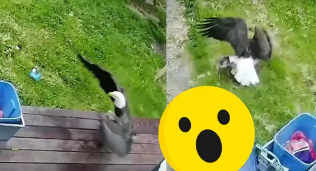 No lo creerías si no lo ves con tus propios ojos, pues a través de un video en redes sociales se mostró el momento en el que un águila caza a un perrito en el patio de una casa, intentando llevárselo volando.