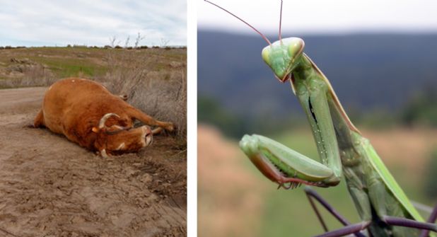 La mantis religiosa, es un insecto que se deja ver cuando finaliza el verano y siempre llama la atención por los mitos que se forman alrededor de él. Uno de las historias más comunes se refiere a vacas o caballos que mueren cuando por accidente se tragan a este pequeño, conocido también en el ambiente campirano como campamocha.