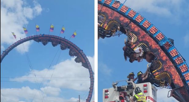Asistentes del Forest County Festival de Crandon en Wisconsin, Estados Unidos vivieron momentos de terror, luego de que una montaña rusa fallara y tuvieran que permanecer de cabeza por más de media hora.