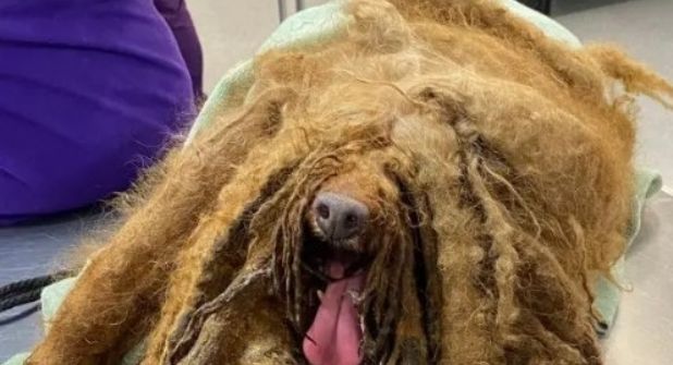 De acuerdo a la SPCA, el sabueso, de nombre Pierre, tenía tanto pelo enredado que el mismo le impedía ver y caminar correctamente; además apestaba a heces y orines.