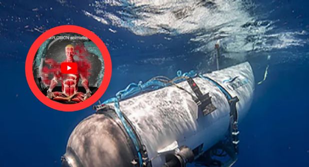 En el video en 3D, se puede apreciar como el cuerpo de una persona se contrae a sí mismo, e implosiona al mismo tiempo que el submarino.
