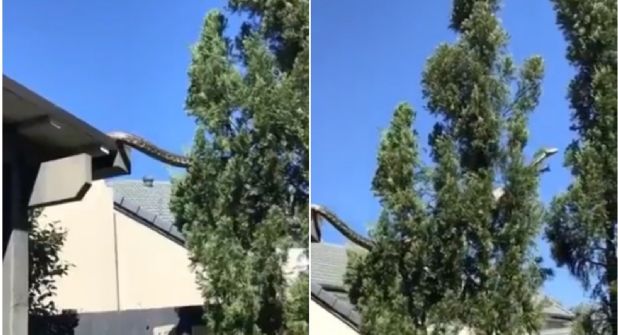 El espeluznante momento fue compartido por el usuario Andrew Anthony en TikTok y ocurrió en la comunidad de Queensland. “Sólo en Australia podrás ver una serpiente de cinco metros en los suburbios”, escribió. El imponente ejemplar fue captado arrastrándose por la parte superior de la casa de los australianos y, momentos después, escurrirse en la alta copa de un árbol cercano.