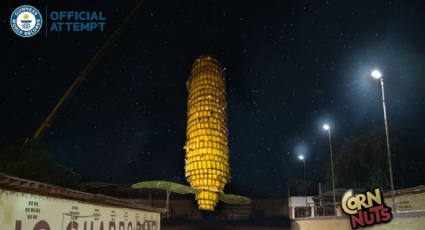 Rubi Ortiz, junto al grupo de artistas Masa Collective se asociaron con la marca de botanas Corn Nuts para crear la enorme artesanía con forma de elote que tiene una altura de alrededor de 10 pisos. El objetivo era hacer un elote gigante para promover el nuevo sabor de la marca llamado Elote Casero Mexicano.