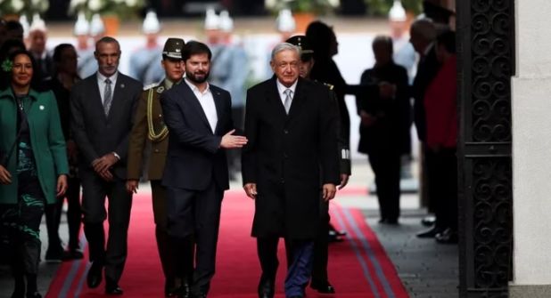 Desde el Palacio La Moneda, sede del gobierno del país sudamericano, AMLO fue recibido con la entonación de los himnos Nacional Mexicano y de Chile. En este marco, Gabriel Boric agradeció la visita del mandatario mexicano, pues sabe que él casi no sale de México, sintiéndose honrado con su visita.