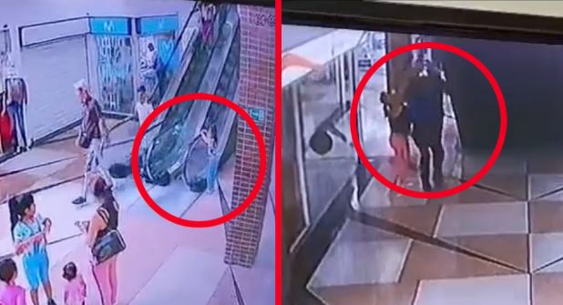A través de un video publicad en redes sociales, se pudo apreciar el milagroso momento en el que un guardia de seguridad atrapa a una niña que había caído desde lo alto de unas escaleras eléctricas, salvando su vida.