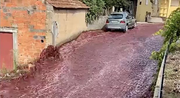Los aproximadamente 2.2 millones de litros de vino (unos 581.000 galones) se derramaron el domingo de dos tanques reventados en Destilaria Levira, según el periódico local Diário de Coimbra. Un vídeo viral de la escena muestra un "río de vino" que corre por una calle montañosa, desbordándose sobre las aceras.