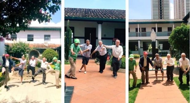 Estos abuelitos de Bucaramanga, Colombia, ya han sido muy conocidos por sus bailes que hacen en conjunto en los jardines de un asilo.