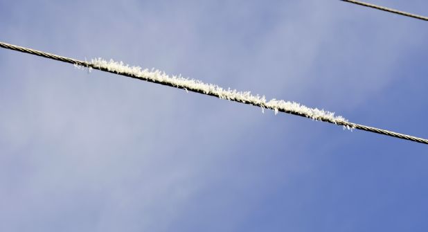 En una publicación en las redes sociales, CPS Energy compartió una foto que muestra la acumulación de hielo en una línea eléctrica y dijo que encontraron la causa del corte de la 151 y Westover Hills.