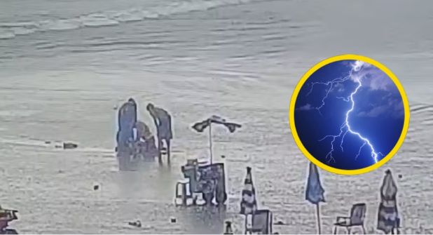 A través de redes sociales se viralizó el momento en el que un rayo impacta sobre una abuelita en una playa de Brasil, fulminándola en el instante y afectando a siete personas más en las cercanías del lugar.