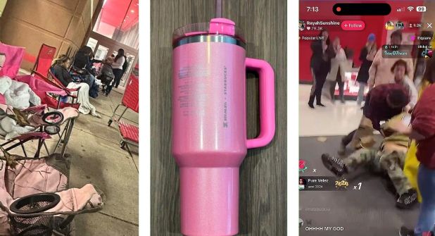El vaso de acero inoxidable y sellado al vacío, de edición limitada y tono rosado, provocó caos en las tiendas, con clientes documentando largas colas, campamentos nocturnos y, en algunos casos, peleas.