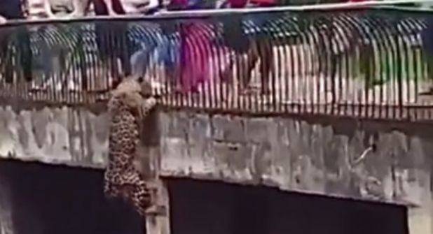 A través de redes sociales, se viralizó el momento en el que un jaguar pretendía escapar de la jaula que lo encerraba, escalando la reja del zoológico y consiguiendo, por poco, llegar a los visitantes.