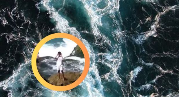 Un video compartido en redes sociales captó el angustiante momento, emocionado por tomarse una foto cerca del mar, extiende los brazos mientras posa frente a las olas.