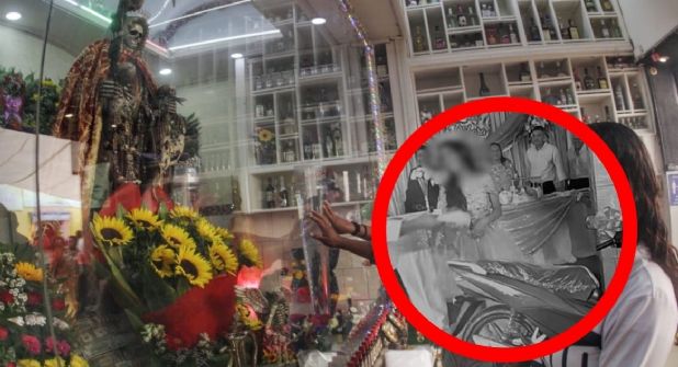 En la ofrenda de la también conocida por sus devotos como “Niña Blanca” había bebidas alcohólicas y veladoras que le habían colocado como ofrenda.