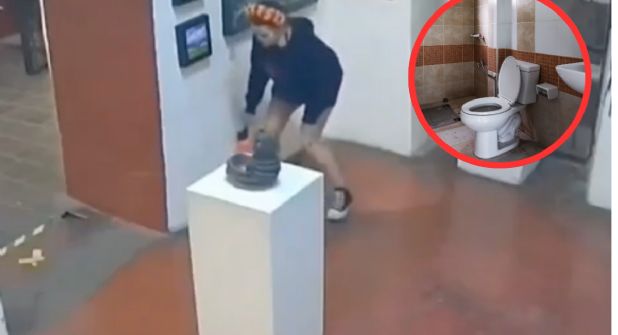 Las cámaras de vigilancia de una galería de arte captaron el momento en que una mujer orina dentro de una sala porque, al parecer, no encontró los baños.