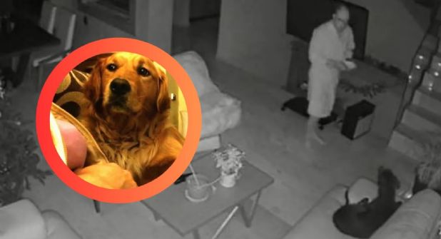 Aterrorizado, comenzó a correr escaleras arriba, convencido de que había alguien más en la casa. Las imágenes de esta escena fueron captadas por una cámara de seguridad en blanco y negro, mientras el hombre gritaba, sin imaginar que el causante del 'hola' era su fiel compañero.