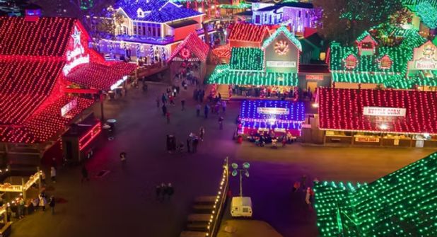 Esta villa cuenta con paseos en carreta o carruaje por su icónico camino de luces, además de 2 áreas de juegos de nieve y una enorme pista de patinaje sobre hielo.