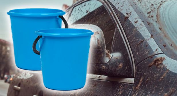 - Preparación de las cubetas: Llena dos cubetas, la primera con agua limpia y la segunda con agua y shampoo para auto.