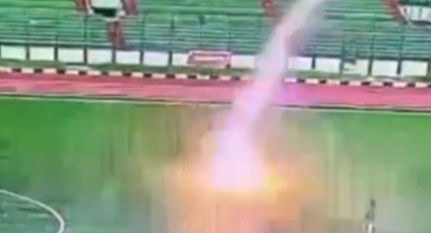 En el video se puede apreciar cuando el rayo impacta directamente en el futbolista, el cual cae al campo inmediatamente.