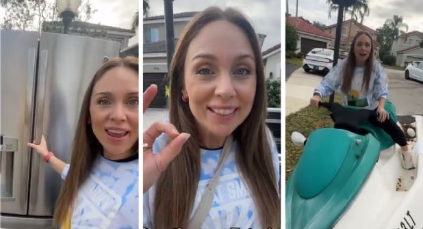 En uno de sus videos, grabado en colonias de clase media y alta de Florida, se puede observar casas grandes, con vehículos de lujo y una enorme cantidad de electrodomésticos que sus dueños están tirando.