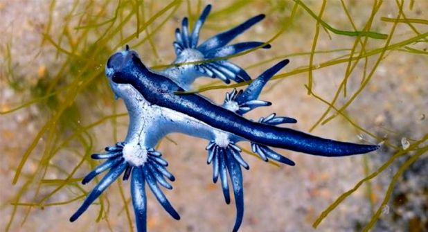 Aunque son hermosos de mirar, los dragones azules pueden producir una picadura mucho más dolorosa que las carabelas portuguesas, una especie de medusas, de las que se alimentan.