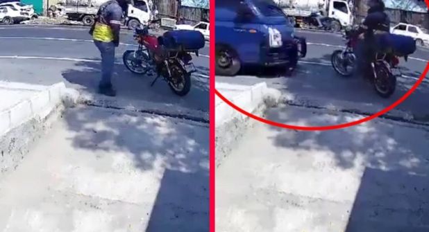 A través de redes sociales, se viralizó el momento en el que un camión, fuera de control, atropelló a un motociclista, quedando grabado el momento en el que la víctima vio su propia muerte segundos antes de suceder.