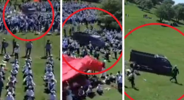 Durante un evento público en el que participaban cientos de niños, un camión que estaba estacionado comenzó a moverse solo, sin conductor, sobre una pendiente.