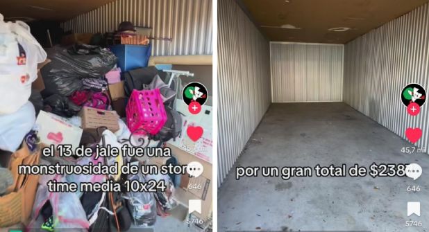 Después acudieron a limpiar un storage, una tipo bodega, que medía 10x24 metros que estaba repleto de muebles como cajas, lámparas y pequeños contenedores.