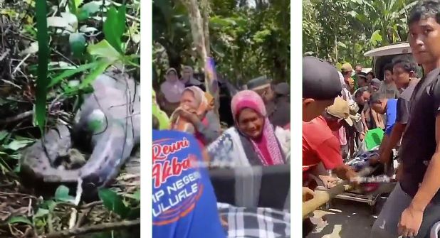 Las impactantes imágenes del hallazgo fueron rápidamente compartidas en redes sociales, mostrando el estómago distendido de la serpiente y el cuerpo de la mujer en su interior.