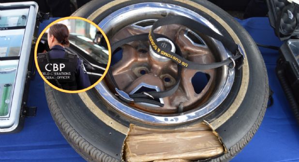 El auto y el tipo fueron enviados a revisión secundaria, los federales de Aduanas y Protección Fronteriza hallaron 25 ladrillos o paquetes con droga dentro de los neumáticos.